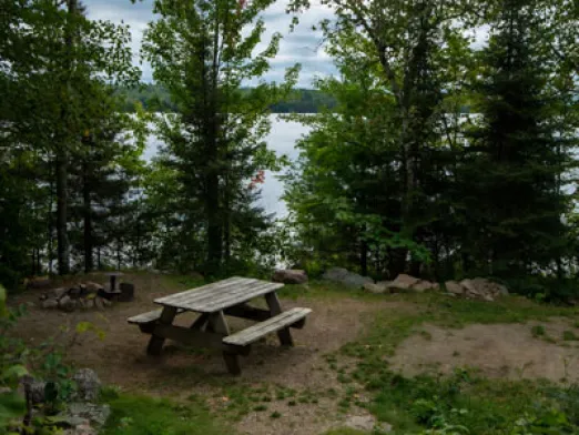 These beautiful campsites are located near the lake and require that camping equipment be carried to the site. A 12'x16' platform is provided for your tent. A rope is needed to tie down the tent. Each site has space for eight (8)people. A picnic table and fire ring are also provided. Biffies are located nearby. There is a centrally located shower house with modern bathroom conveniences. These sites do not have any electrical hookups, but nearby refrigeration and food storage are available. Dishes and cookware are provided.