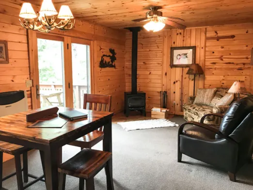 This cabin features a knotty pine interior that offers the charm of yesterday and the modern amenities of today.
