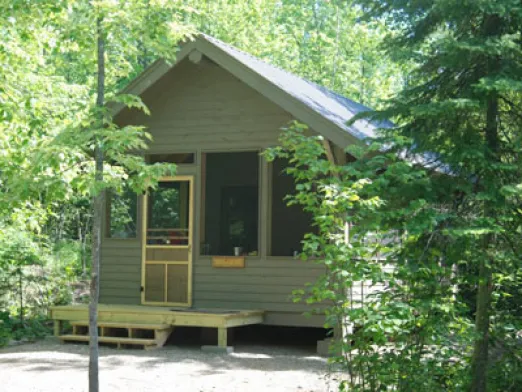 Enjoy one of our “off-the-grid” eco-cabins. These newer cabins are simple yet very comfortable. A screened porch with a picnic table (and stainless steel table) makes outdoor cooking a breeze. The sleeping room includes two (2) elevated twin-long-over-queen bunk beds. Nearby water spigots, showers, biffies, and refrigeration are available. Solar lanterns and all dishware and cooking utensils are provided.
