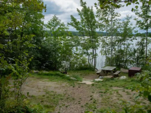 These beautiful campsites are located near the lake and require that camping equipment be carried to the site. A 12'x16' platform is provided for your tent. A rope is needed to tie down the tent. Each site has space for eight (8)people. A picnic table and fire ring are also provided. Biffies are located nearby. There is a centrally located shower house with modern bathroom conveniences. These sites do not have any electrical hookups, but nearby refrigeration and food storage are available. Dishes and cookware are provided.