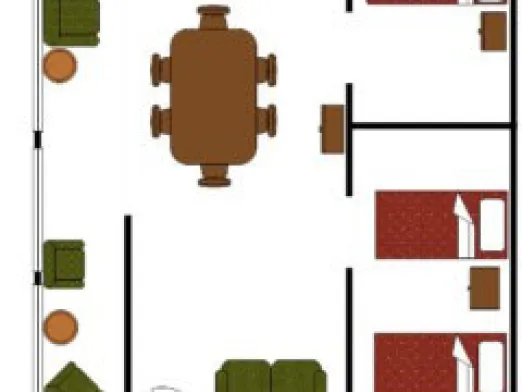 This 2-bedroom cabin in North Point Village features a full kitchen, dining/living room, bathroom, and lake views. Flat and Fitted sheets are included for each bed. Pillows, blankets, and towels are not included.